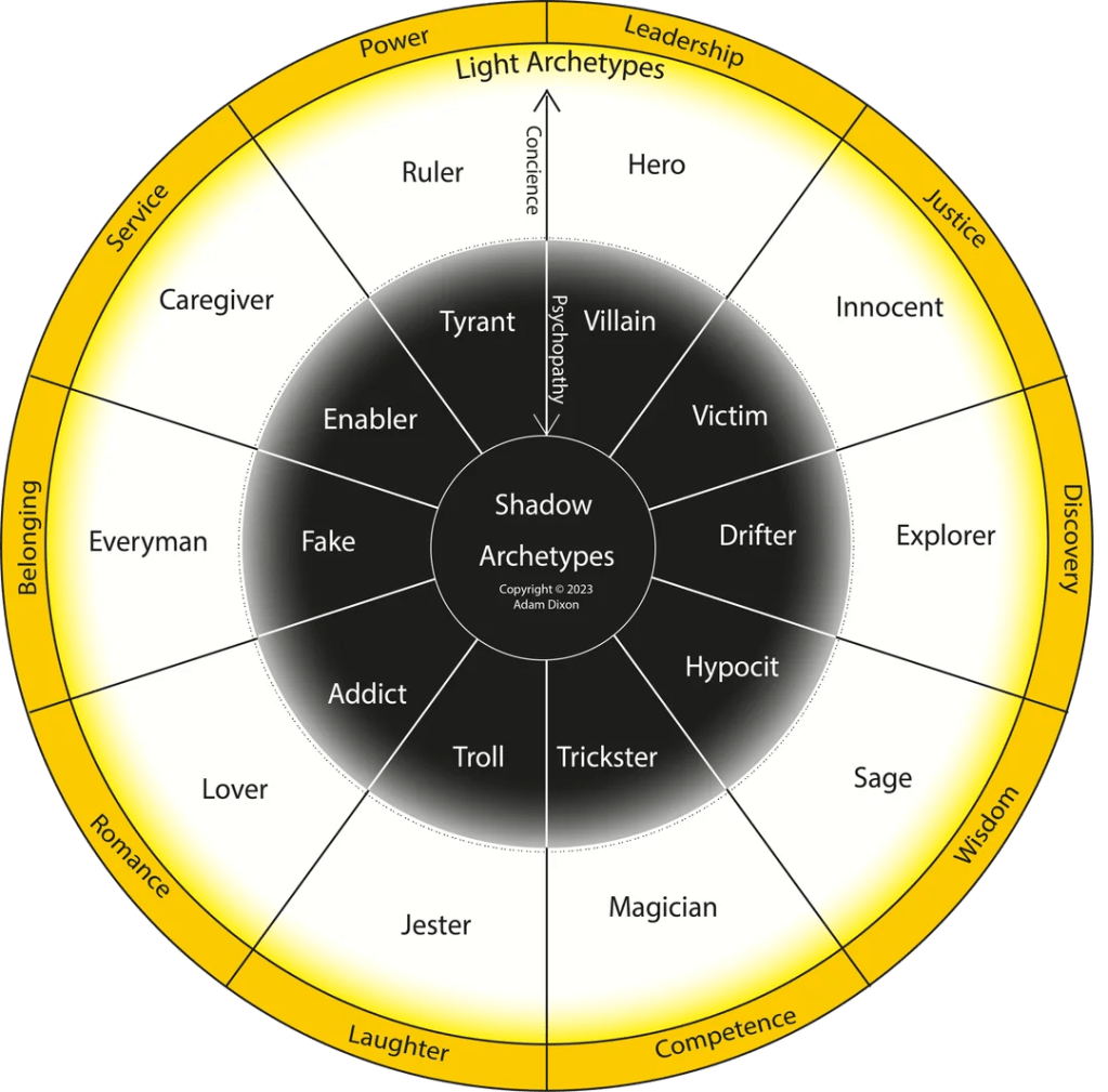 This new refinement of the Individuation Wheel goes deeper than ego-costumes and personality aesthetics. It strips away the romanticized language and moves toward the raw, atomic layers of psyche, where archetypes live, and where their shadows hide.